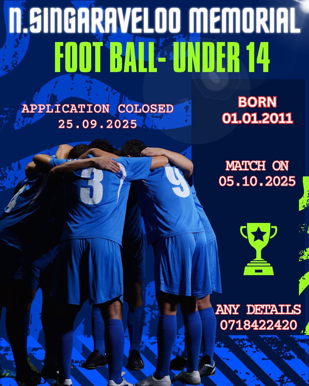 சிங்காவேலு மாஸ்டர் ஞாபகார்த்த U-14 கால்பந்து போட்டி சிங்காவேலு மாஸ்டர் ஞாபகார்த்த கால்பந்தாட்ட போட்டி – 2025 இற்கான Under 14 பிரிவுக்கான விண்ணப்பங்கள் தற்போது கோரப்பட்டுள்ளன. இந்தப் போட்டிக்குத் தகுதி…
